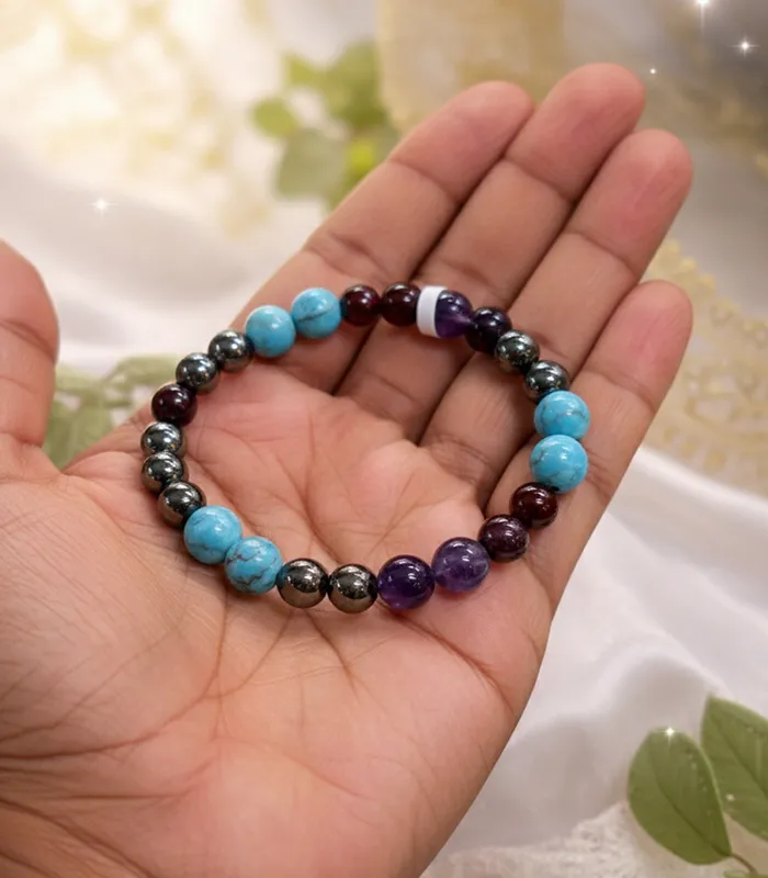Turquoise, Hematite, Amethyst, Tourmaline