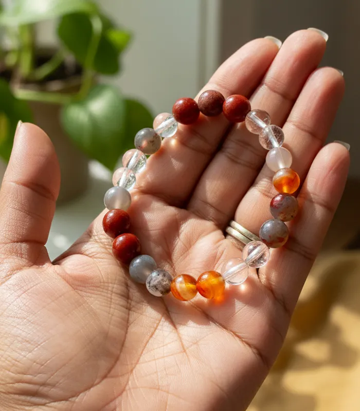 red jasper, carnelian, clear quartz,labrodite (Standard)