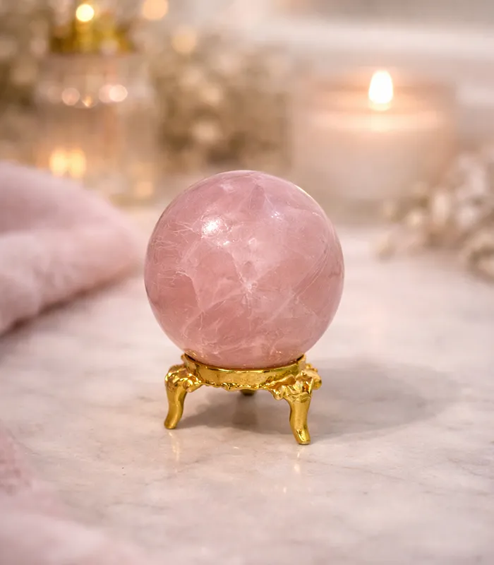 - Rose Quartz Sphere gently radiates nurturing and heart-centered energy, creating a calming and loving atmosphere. It supports emotional healing by easing heartbreak, grief, and emotional tension.