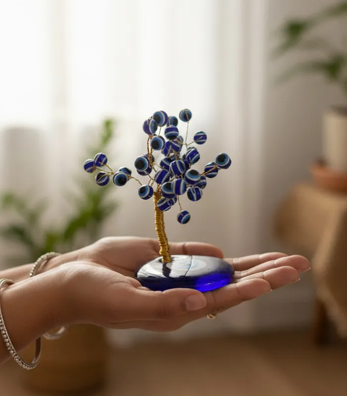 The Evil Eye Protection Tree is designed to support energetic protection and emotional stability within a space. Its symbolic form helps ward off negative influences and maintain a calm, balanced environment.